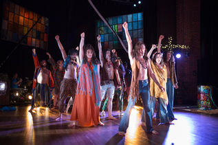 Another collaboration with the Mad Men, and one of my proudest moments as a designer. Upon learning that the play would be set in a "warehouse" decorated by the tribe, my instinct was to forego many design conventions. Namely, I placed almost every instrument on the theatre floor. Only a "moon" and some aerial dance sculpting remained overhead. The result was a directional, grungy, asymmetrical dance plot that energized the production. The snow and bubbles helped, too!